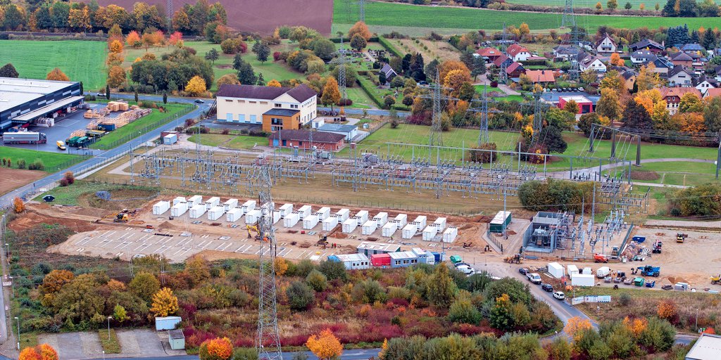 Alfeld - Der große Batteriespeicher oberhalb der Bundesstraße 3 wächst, die Dimensionen sind inzwischen deutlich zu erkennen. Was schon da ist, was noch fehlt, und wann die Anlage den Betrieb aufnehmen soll.