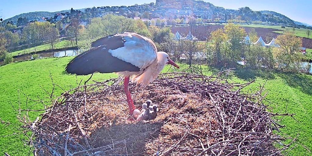 Alfeld hat Nachwuchs: Drei kleine Störche sind im Nest an der Leine bereits geschlüpft