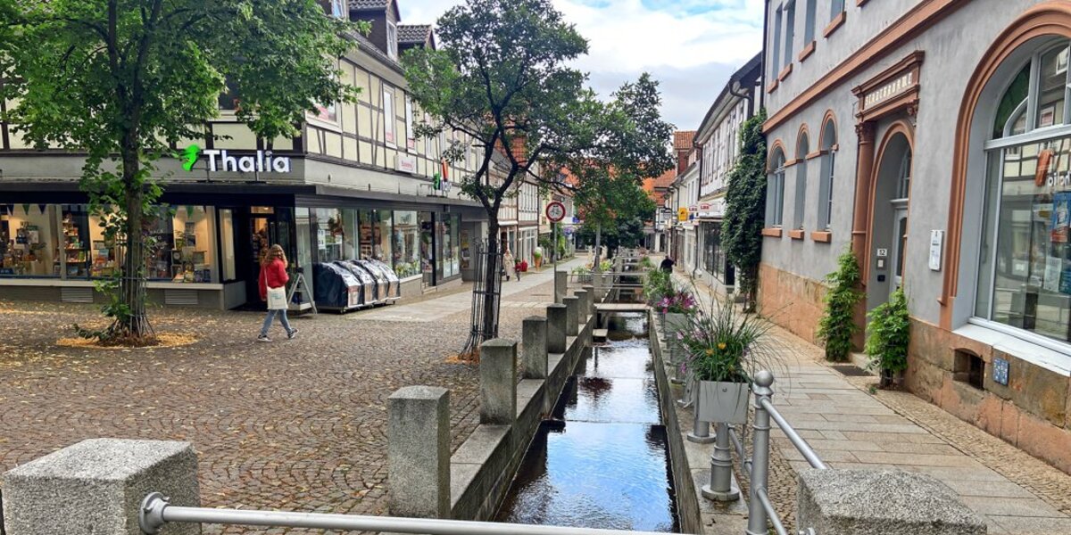 Doch es ist keine Frage: Auch in Alfelds Innenstadt war schon mal mehr los. Gab es mehr inhabergeführte Einzelhandelsgeschäfte, dafür weniger Leerstände. Sieht der neugierige Passant Häuser, die schon längst einmal hätten saniert oder wenigstens renoviert werden sollen. Kann das hübsche Bächlein, das vom Marktplatz herunterplätschert, nicht darüber hinwegtäuschen, dass es der Fußgängerzone an Fußgängern mangelt und damit vielen Geschäften an Kunden. Und nun steht auch noch die Volksbank vor dem Wegzug aus dem unmittelbaren Zentrum. Zudem verstärken seit kurzem Rewe und Subway im alten Kaiserhof die Fliehkräfte weg vom Zentrum.