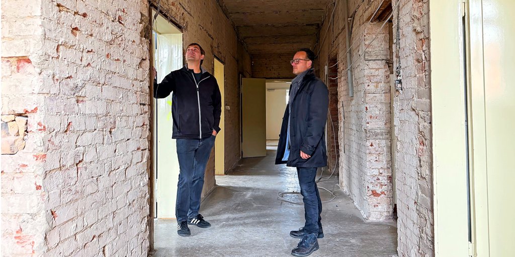 Gerrit Engelke (links) und Mario Stellmacher sind mit der Substanz des Gebäudes zufrieden. Foto: Stephanie Marschall