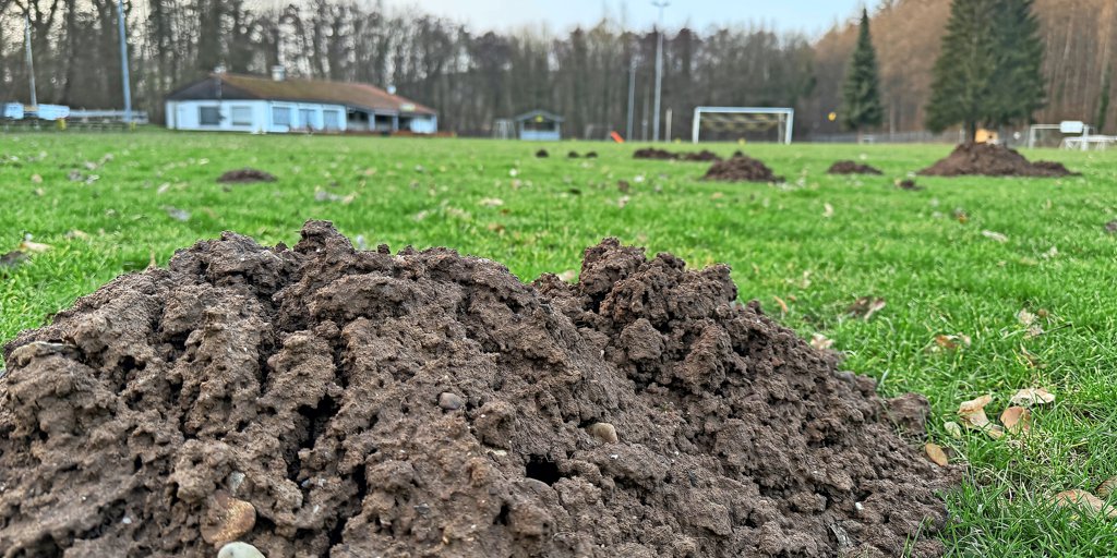 Diekholzen - Die Rasenfläche des Diekholzener Sportplatzes ist regelrecht von Maulwurfshügeln…