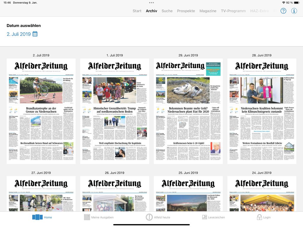 Im Archiv können Sie zudem nach Belieben in alten Ausgaben Ihrer AZ stöbern – Sie finden dort alle Artikel, die seit dem 2. Juli 2012 erschienen sind. Darüber hinaus können Sie in der App auch Push-Nachrichten für ihr Smartphone oder Tablet abonnieren: Damit sind Sie künftig umgehend über Eilmeldungen aus Politik, Wirtschaft, Sport oder Kultur sowie Straßensperrungen in und um Alfeld informiert.