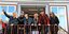 Um 11.48 Uhr rollen ein schwarzer und ein weißer Van in die Fußgängerzone. Dann steigen sie aus. Jubel brandet auf. Klaus Meine, Schlagzeuger Mickey Dee, Leadgitarrist Matthias Jabs, Bassist Pawel Maciwoda und Rudolf Schenker – der Mann vom Giebelstieg. Es ist ein großes Hallo. Die Band steigt die Rathaustreppen hoch. Dort ist der Raum, in dem sie sich ins Goldene Buch eintragen wird, brechend voll.