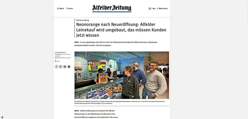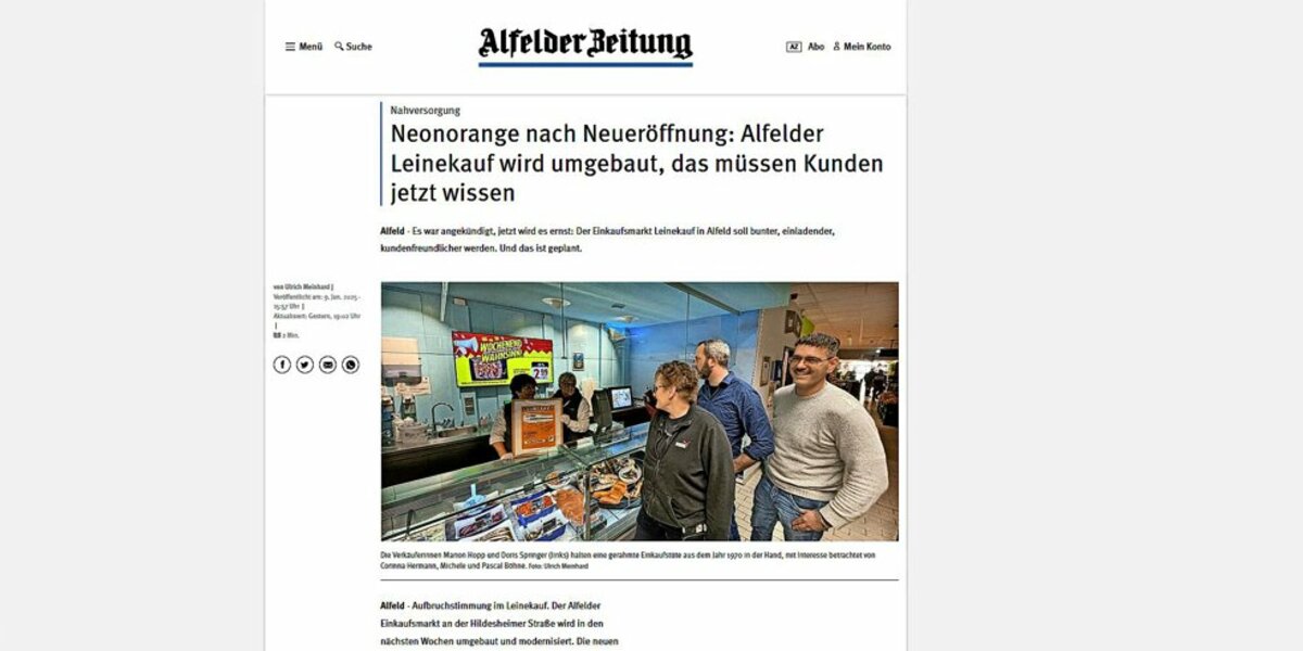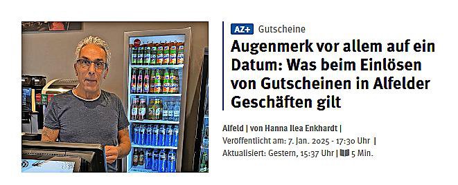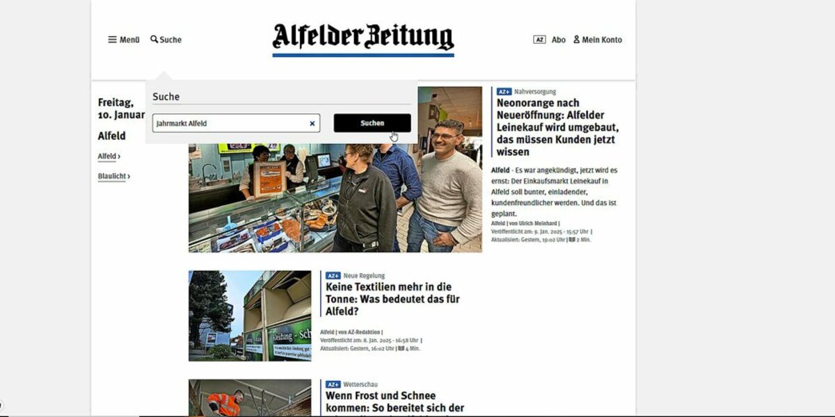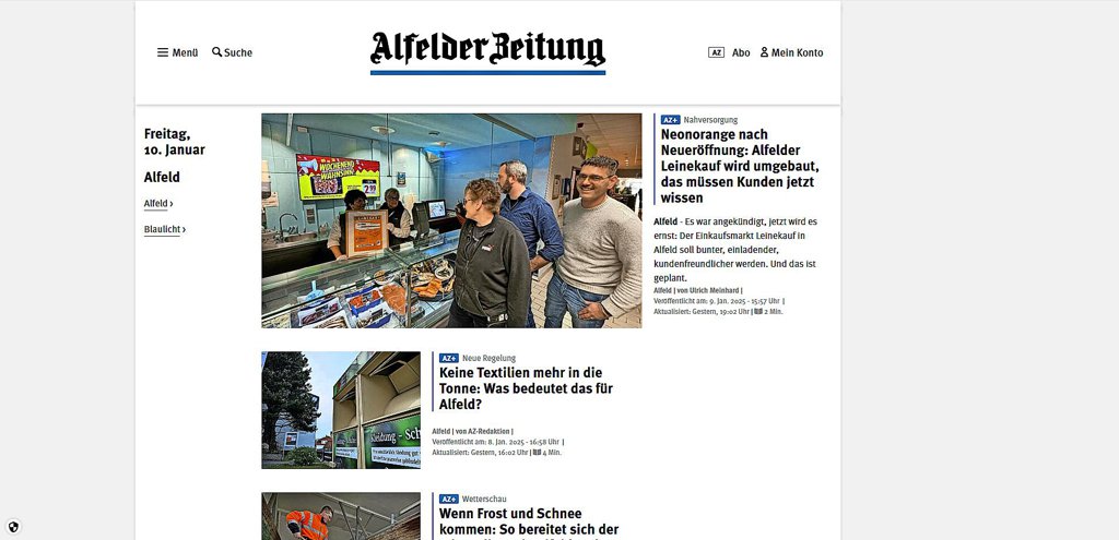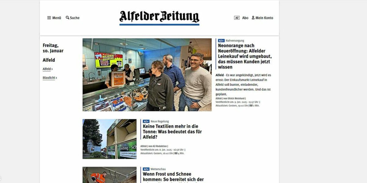 Das gilt für Abonnenten des Webangebots (“AZ+“): Als Abonnent des Web-Angebots (AZ+“) nutzen Sie unbeschränkt alle Beiträge und Angebote auf alfelder-zeitung.de und lesen die aktuellsten Nachrichten in der App. Das ePaper ist nicht Teil des Angebots von AZ+.