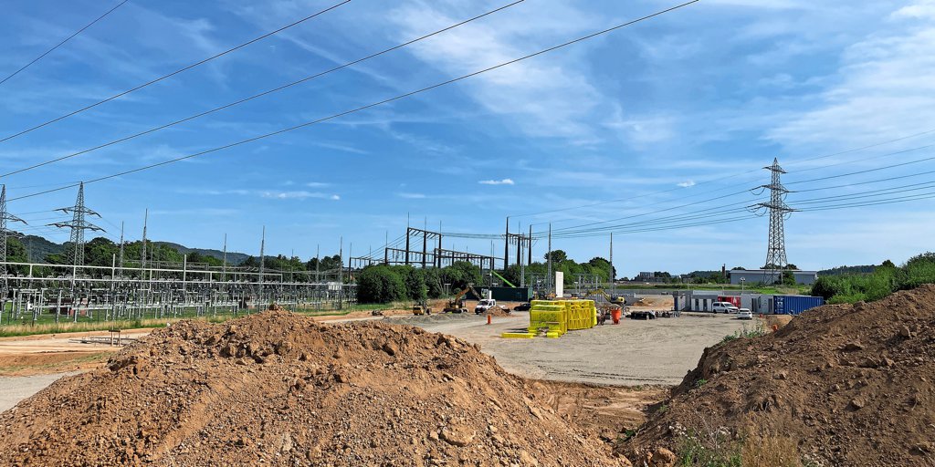 Alfeld - Zum Baustart des Mega-Batteriespeichers in Alfeld gab es Verzögerungen, seit März aber sind die Bauarbeiten in vollem Gange – so ist der aktuelle Stand.
