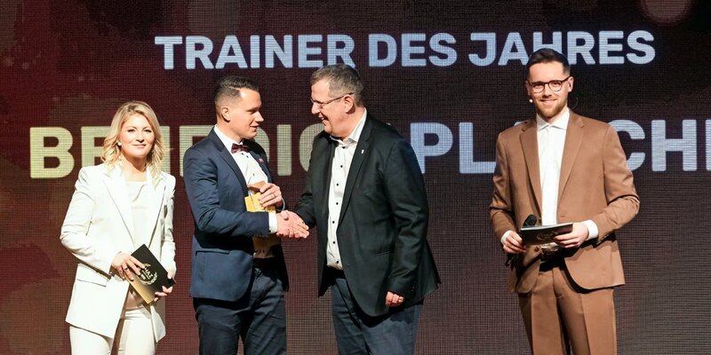 VfV-06-U19-Trainer Benedict Plaschke nahm als erster Preisträger des Abends seine Auszeichnung entgegen. Ihn wählten die HAZ-Leser zu Hildesheims Trainer des Jahres. Plaschke: „Das ist nicht mein eigener Preis. Darum möchte ich mich bei meinem gesamten Trainer-Team bedanken.“