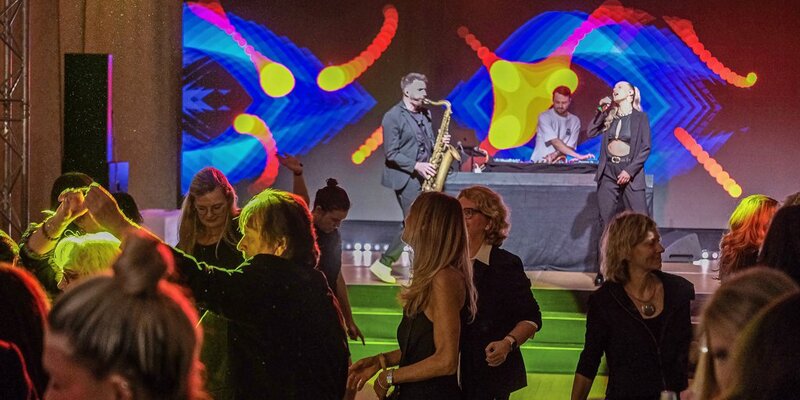 Ein DJ, ein Saxofonist und eine Sängerin sorgten für eine tolle Stimmung – und eine volle Tanzfläche.