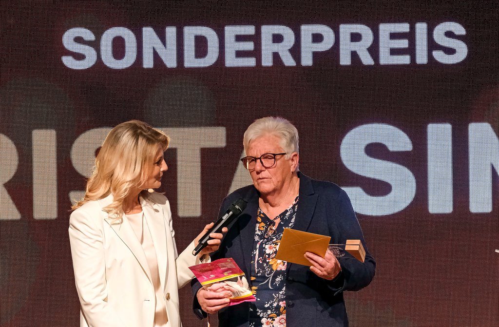 Denn Schwimmlehrerin Christa Simmen erhielt den Sonderpreis für all die Jahre, in denen sie über mehrere Generationen Kindern aus Hildesheim und der Region das Schwimmen beigebracht hatte. Nun hat die 75-Jährige als Lehrerin aufgehört. Sie sagte auf der Bühne: „Es ist so, dass ich mehr Schwimmzüge machen will als Schritte am Beckenrand.