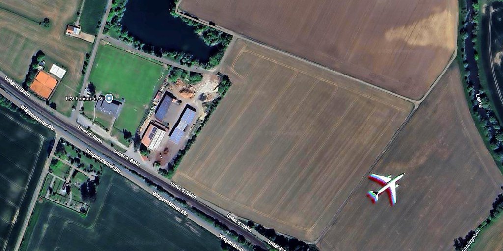 Föhrste - Eine Satellitenaufnahme zeigt es bei Google Maps ganz deutlich: Auf einem Feld nahe eines Alfelder Ortsteils scheint ein großes Passagierflugzeug zu stehen. Der Alfelder Peter Leußner, begeisterter Himmelsbeobachter, hat das Phänomen recherchiert – und Erstaunliches herausgefunden.