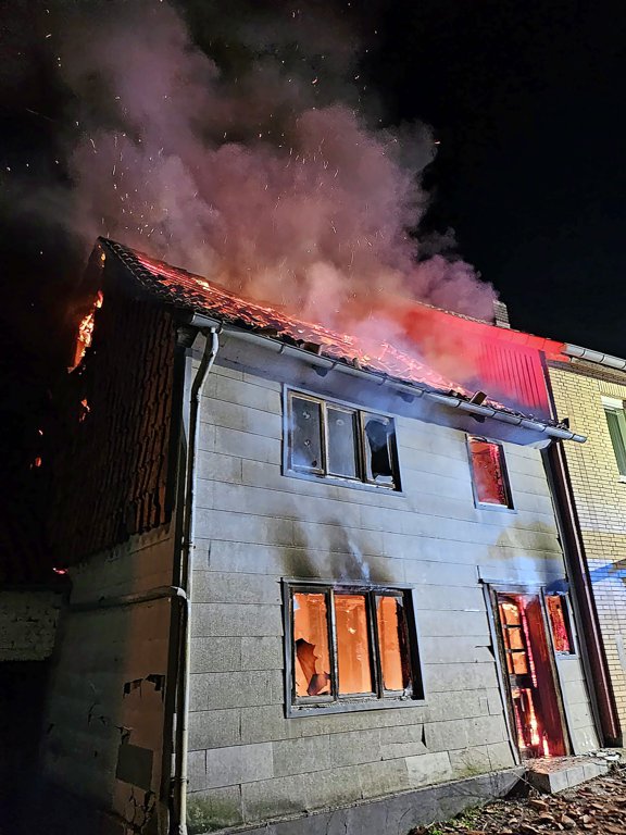 Alfeld - In der Heimbergstraße im Alfelder Ortsteil Eimsen ist in der Nacht zu Dienstag ein Einfamilienhaus vollständig ausgebrannt. Der Alarm ging um 3.20 Uhr ein, als ein Nachbar die Feuerwehr rief – dann rückten insgesamt 71 Einsatzkräfte aus Eimsen, Sack, Langenholzen und Hörsum sowie der Feuerwehr Alfeld nach Eimsen aus. Dadurch, dass die Einsatzkräfte schnell eingegriffen haben, verhinderten sie, dass die Flammen auf angrenzende Reihenhäuser übergriffen. Dazu riegelten sie das betroffene Haus gezielt ab.