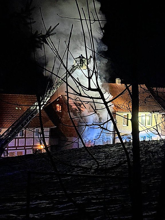 Das Feuer zerstörte das Gebäude dennoch vollständig. Die Feuerwehr erklärte das Haus für unbewohnbar. Nach Abschluss der Löscharbeiten wird sie es an die Polizei übergeben. Am frühen Morgen waren die Feuerwehrkräfte noch in Eimsen im Einsatz. Der erste und der zweite Zug führten Nachlöscharbeiten durch, um verbliebene Glutnester abzulöschen und zu verhindern, dass der Brand erneut aufflammt. Der Stadtbrandmeister kündigte gegen 6 Uhr an, den Einsatz nun schrittweise zu beenden.