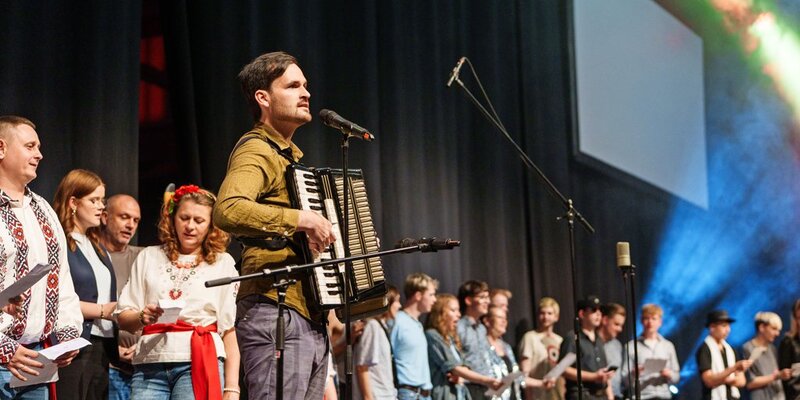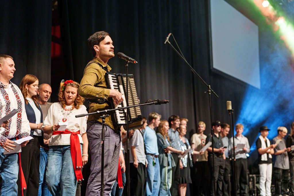 NeboKray sind zehn Frauen und ein Mann aus der Ukraine. Der Krieg hat sie aus ihrer Heimat nach Sarstedt vertrieben. Auch hier wollen sie ihre Kultur erhalten und leben. Beim Finale von „hört! hört!“ singen sie ein Medley aus ukrainischen Volksliedern. Das ist wahnsinnig schmissig. (Foto Till Schellenberger)