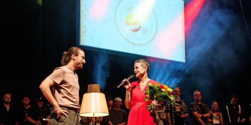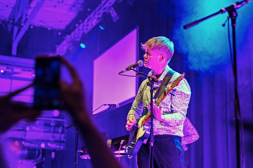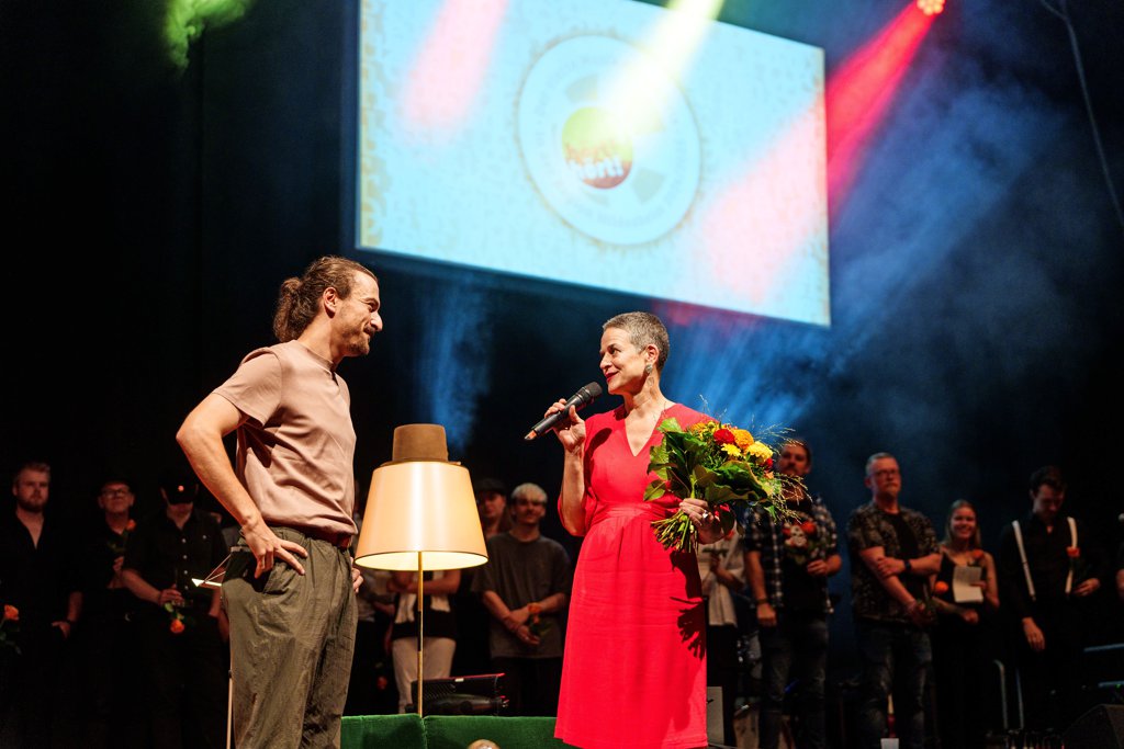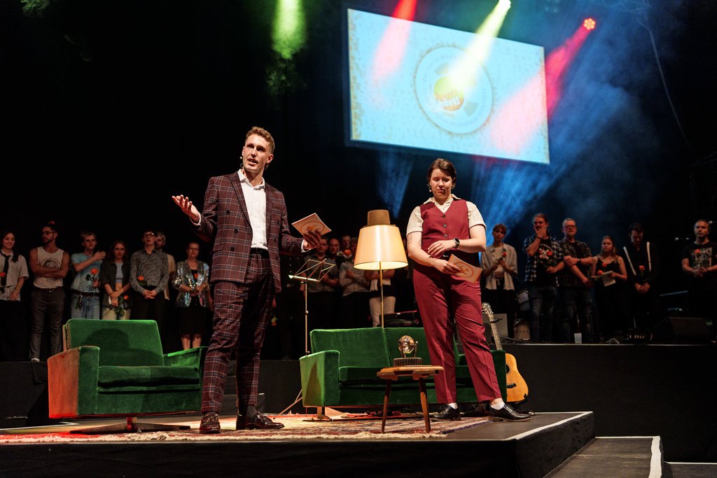 Moderiert haben den Abend Max Hannappel und Kaja Stürmer. Beide haben schon zusammen Musik gemacht und Stürmer den Contest sogar 2017 gewonnen. Als Projektassistenz wollte sie jetzt dabei helfen, dass auch andere diese Chance haben. (Foto: Clemens Heidrich)