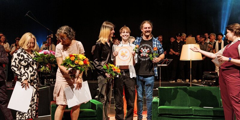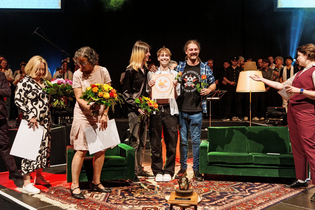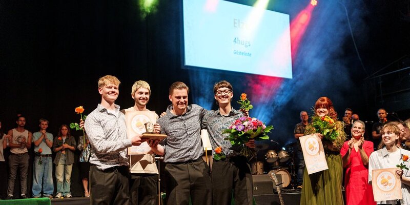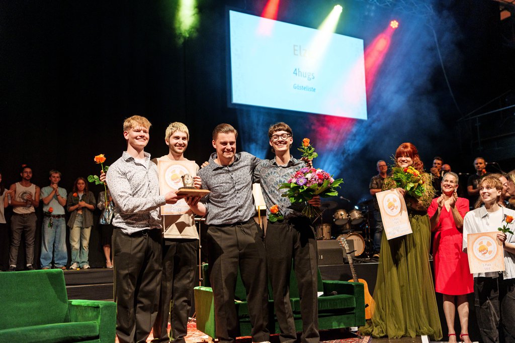 In diesem Moment stand fest: Dieses Jahr geht der Pokal nach Elze. 4hugs haben sowohl Jurys als auch Publikum überzeugt. Die Freude ist den vier jungen Männern (19 und 21 Jahre alt) anzusehen. Das Preisgeld wollen sie nutzen, um die Produktion ihrer ersten EP zu finanzieren. (Foto: Clemens Heidrich)