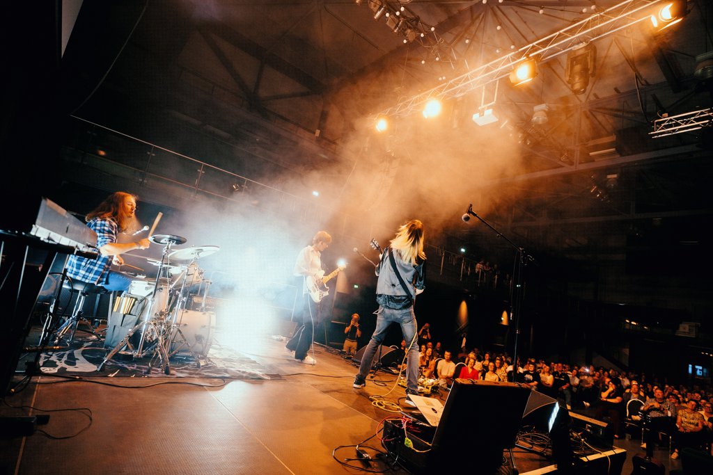 „Bring It On“: arrival aus dem Leinebergland beschließen den Wettbewerb. Die Gruppe hat schon über 50 Konzerte zusammen absolviert. Beim Auftritt in der Halle 39 hält sie nichts an Ort und Stelle. (Foto: Till Schellenberger)