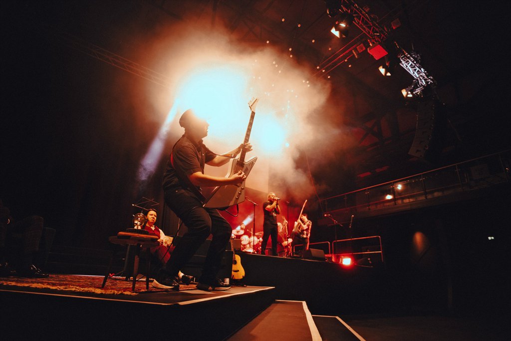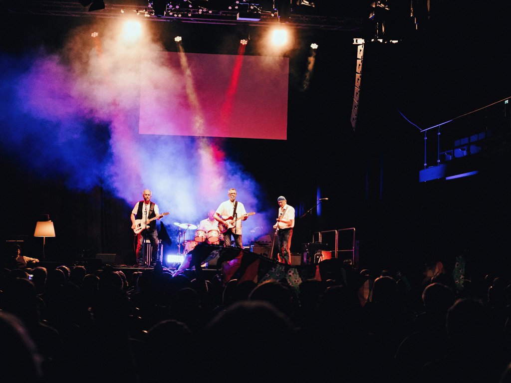 MUTC steht für Marcus Langlott aus Machtsum an der Rhythmus-Gitarre, Ulrich Engels aus Hildesheim an der Gitarre, Thomas Höppner aus Emmerke am Bass und Christoph Kelpe aus Machtsum am Schlagzeug. Die Band aus Harsum gehört zu den ältsten Teilnehmern bei „hört! hört!“ 2025. Im Finale bringen sie mit „Hald dich an mir fest“ von Peter Maffay die Halle zum Schunkeln. (Foto: Till Schellenberger)