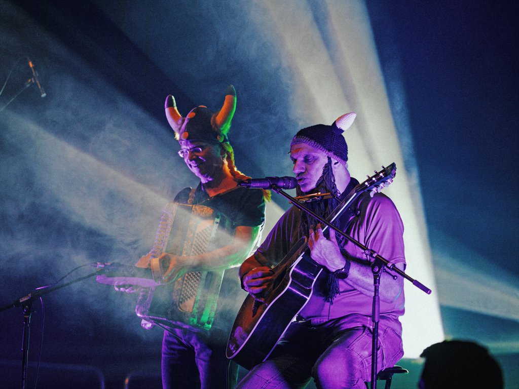 „De Wind secht Maria“ spielen Dorfrock. Das Original stammt von ihren großen Vorbildern, von Torfrock. Die plattdeutsche Hymne ist eine Verballhornung von „The Wind Cries Mary“ von Jimi Hendrix. Dorfrock sind Michael Beitzen und Christoph Janott. Die beiden machen seit 20 Jahren in unterschiedlichen Bands Musik und begrüßen das „hört! hört!“-Publikum mit einem kräftigen Moin! Sonst spielen sie eigentlich nur an Silvester im Freundeskreis so zusammen. (Foto: Till Schellenberger)