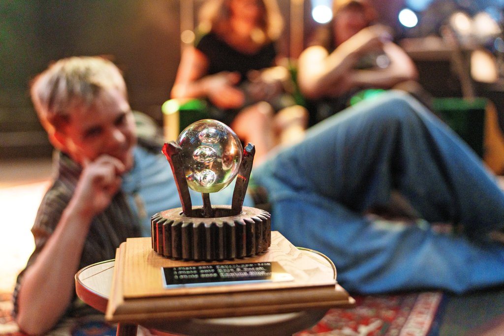 Dieser Wanderpokal winkte dem Sieger oder der Siegerin. Zuletzt stand er in Bad Salzdetfurth. Denn 2022 gewann „Feeling Blue“ den Musik Contest. Ansonsten sind die Namen vom Felix-Lopp-Trio seit 2014 und Kaja und Sarah seit 2017 auf der Plakette eingraviert. (Foto: Clemens Heidrich)