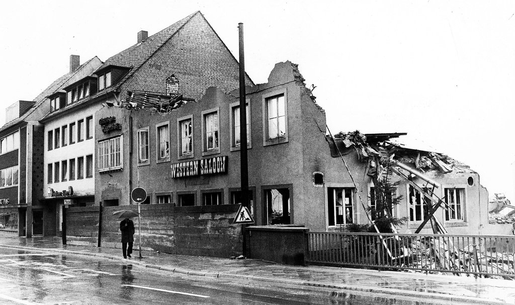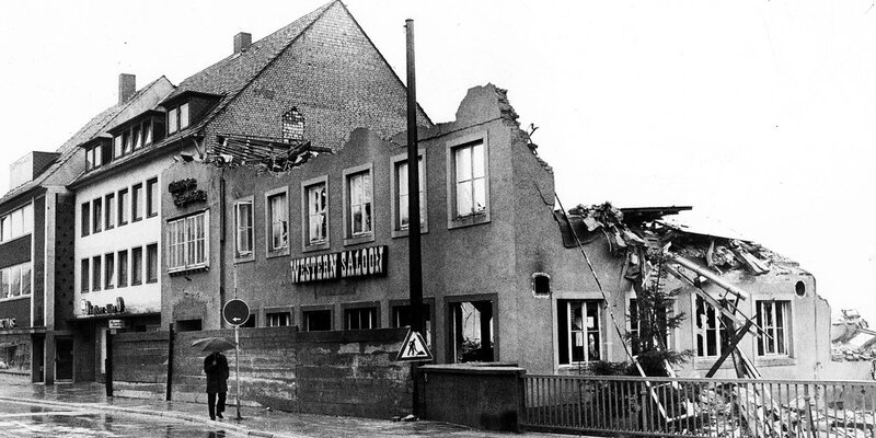 Er galt als Goldgrube und war lange Zeit ein legendärer Treffpunkt in der Stadt, doch dann fiel Hildesheims Western Saloon in der Dammstraße den Baggern zum Opfer und zwar am 22. März 1975. Die historische Aufnahme von damals zeigt den Abriss in vollem Gange – nur noch die Fassade mit dem markanten Schriftzug ist zu sehen.