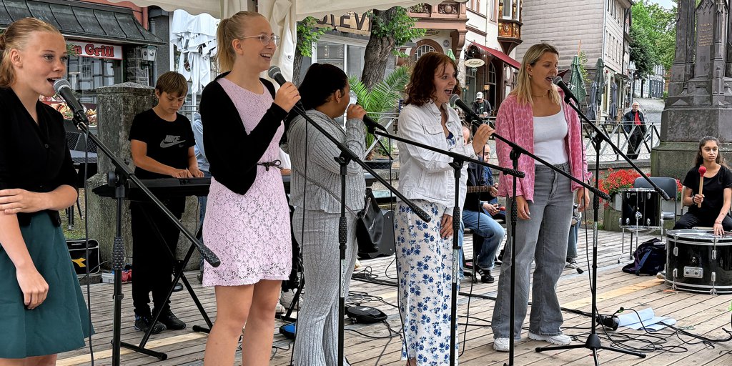 Auf der Bühne gab es Live-Musik, und an vielen Orten in der Innenstadt zeigten Schülerinnen und Schüler aus vier Alfelder Schulen, wie sich mit kreativen Ideen eine Fußgängerzone sichtbar beleben lässt.