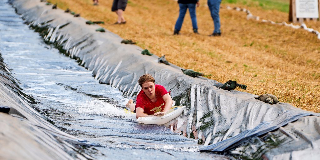 In der Rutschbahn konnte man schnell in Schieflage geraten - die meisten Teilnehmer brachten sich aber geschickt wieder auf Kurs. Foto: Clemens Heidrich