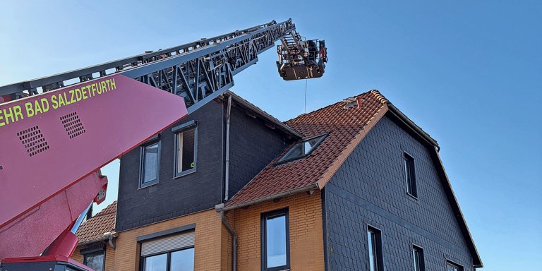 Schornsteinbrand in Lamspringe: 30 Einsatzkräfte und die Drehleiter aus Bad Salzdetfurth waren am Montagvormittag im Einsatz