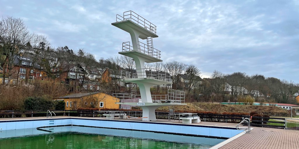 Sprungturm wird für 75.000 Euro saniert: Wird das Außenbecken des 7-Berge-Bades pünktlich zur Freibadsaison wieder öffnen?