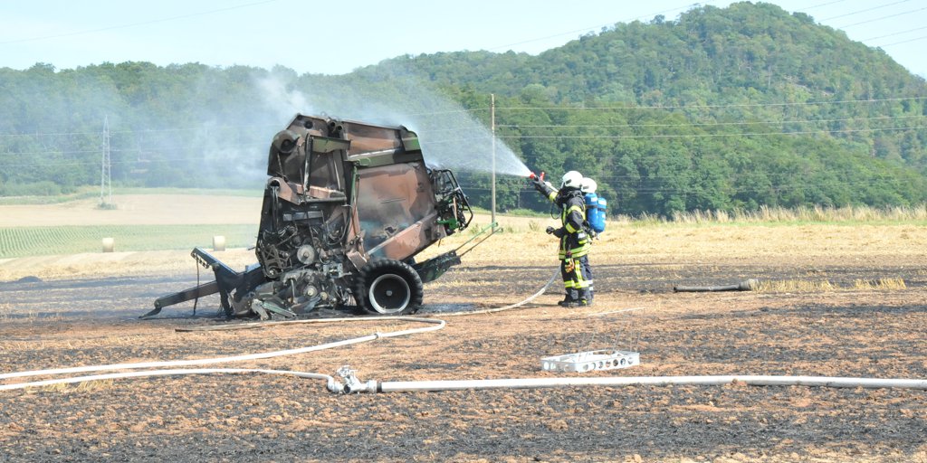 Strohpresse gerät zwischen Brüggen und Wettensen in Brand – zwei Landwirte verhindern Schlimmeres