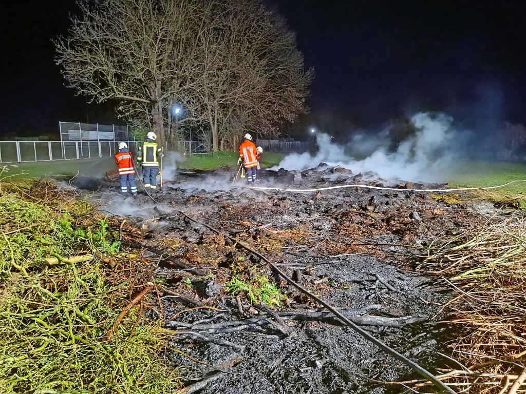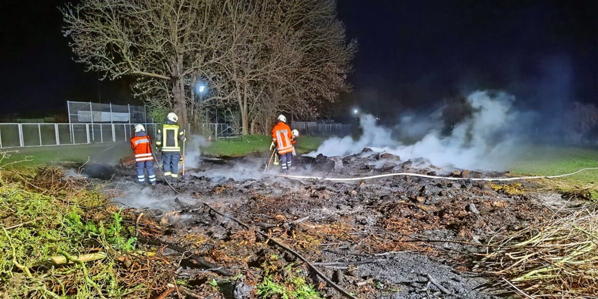 Gronau - Unbekannte haben das Osterfeuer am Freibad in Gronau schon vorzeitig entzündet. Gemeldet wurde das der Polizei am Samstag gegen 2.10 Uhr. Nach bisherigen Erkenntnissen der Ermittler brannte das Feuer jedoch bereits gegen 0.30 Uhr. Die Freiwillige Feuerwehr Gronau, die gegen 2.11 Uhr in die Kuhmasch alarmiert wurde, löschte das Feuer mittels zweier Rohre ab und verhinderte damit eine Ausbreitung, wie Dennis Kleinert, Pressesprecher Gemeindefeuerwehr Leinebergland, berichtet. 16 Mitglieder der Feuerwehr waren im Einsatz, auch zwei Streifenwagen der Polizei waren vor Ort.