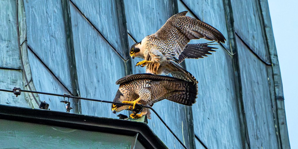 Wanderfalken von St. Andreas kümmern sich um vier Eier im Kirchturmnest