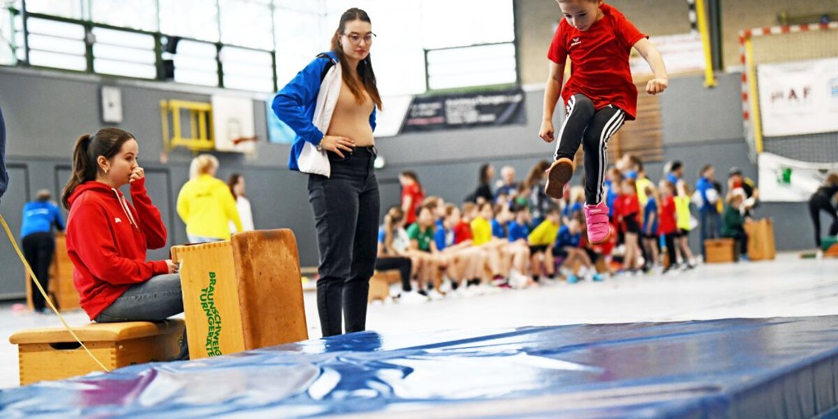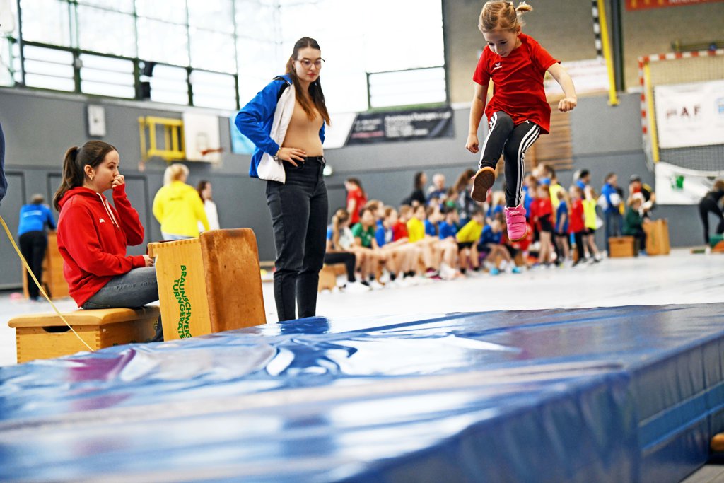 Alfeld - Turnschuhe quietschen über den Hallenboden, ein Startsignal pfeift durch die Luft, von der Tribüne brandet Jubel auf. In der Alfelder BBS-Halle herrscht Hochbetrieb – mittendrin Romy Westermann. Die Achtjährige vom TSV Brunkensen steht am Start über 30 Meter, wippt kurz auf den Fußballen – dann geht es los. Ein paar Sekunden Vollgas, begleitet von lautstarker Unterstützung der Eltern. Genau für solche Momente ist dieses Hallensportfest gemacht.